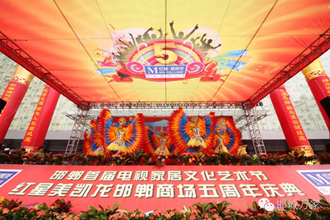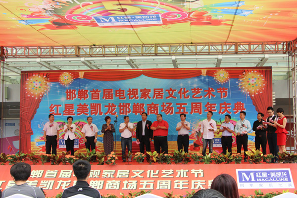 9月24日上午,红星美凯龙二期“家饰界”生活广场南侧,拱门并立,彩旗招展,欢歌劲舞,锣鼓喧天,宾客如云,人声鼎沸,红星美凯龙邯郸商场五周年庆典仪式在这里隆重举行。中道房地产开发公司董事长王孟堂,总经理李从侠,常务副总王书梅,副总经理刘晓东、于爱萍、申延平,红星美凯龙集团冀北区域中心总经理徐成勇,红星美凯龙邯郸商场总经理浦明程等,与上百名商户代表和广大消费者一起,共同欢度这一难忘的庆典盛会。