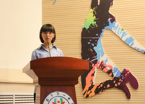 我是邯郸市一中2019届毕业生王子涵。很荣幸今天作为中道精英奖的获奖学生代表上台发言。首先,请允许我代表邯郸学子向一直以来关心我们学习、关爱我们成长的政府有关部门和中道公司表示衷心的感谢!