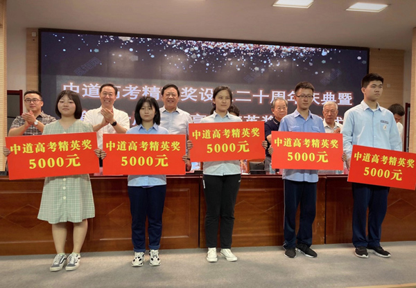 庆典活动中,现场播放了历届中道高考精英学子发来的祝贺和祝福的宣传短片。感念母校师恩、铭记中道厚望,让于无声处爱的延续汇聚成激越人心的学习奋斗动力。在今年高考中获得全市文理科优异成绩的5名学生各获得5000元助学金,优秀班主任老师也各获得1000元奖金。一年一度的中道精英奖,犹如一石激浪,跃动着成千上万个莘莘学子志向高远的不安分的心。