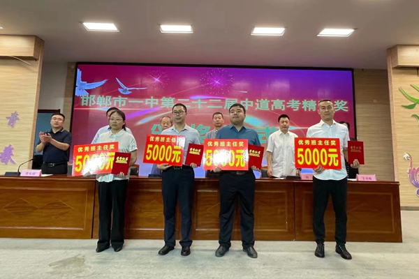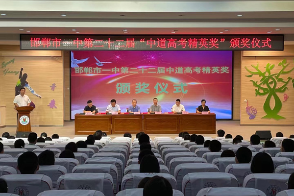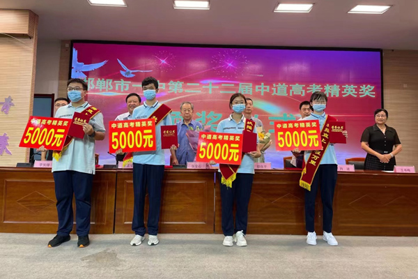2022年8月8日上午,邯郸市一中第二十二届“中道高考精英奖”颁奖仪式在邯郸市一中中道报告厅举办。4名优秀学子及其班主任获得今年“高考精英奖学金”。